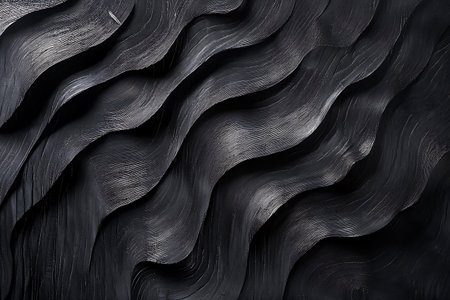 Explore a captivating abstract of flowing black waves marked with distinct striations, creating a textured surface that blends dark elegance with intricate detail in the image.