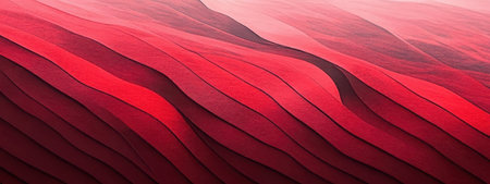 An abstract background featuring a dynamic pattern of wavy, parallel lines in a gradient of red hues. The colors transition from deep maroon at the bottom to vibrant red and lighter shades towards the top, creating a sense of depth and movement. The surface exhibits a subtle, granular texture.