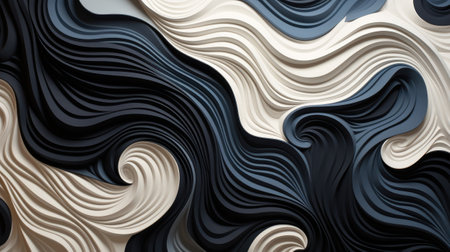 3d rendering, abstract background with waves in black and white colors
