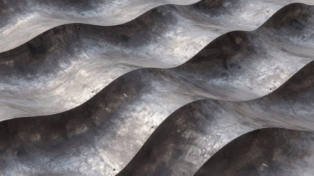 This image showcases an abstract view of textured metal waves, featuring smooth curves and light reflections. Ideal for artistic and industrial designs.