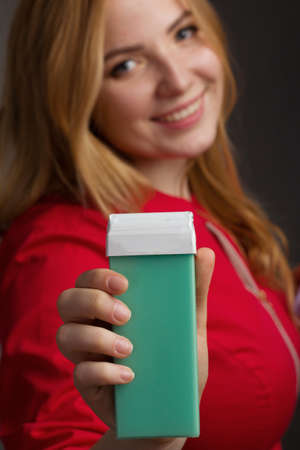 Liposoluble wax cartridge on color background