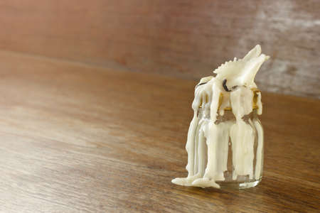 Old candle on wooden background