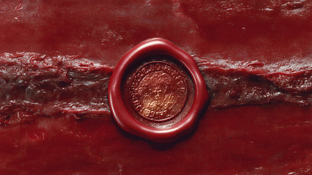 Red wax seal on a piece of beef. Close-up.