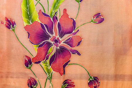 Flower fragment, hot batik background texture, handmade on silk abstract surrealism art