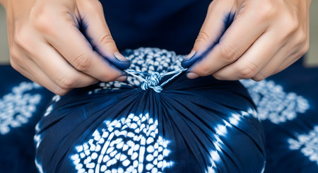 a woman dying fabric with indigo dye.