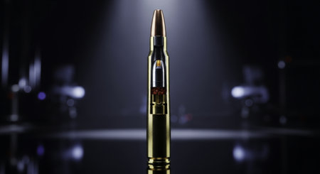 Detailed cross section of a rifle cartridge revealing its internal components, bullet, gunpowder, and primer. highlights ammunition technology and precision engineering.