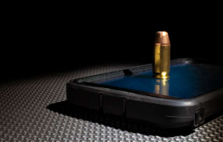 bullet on a black background, close-up, shallow depth of field