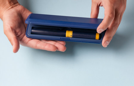 Close-up of a man's hand holding an electronic cigarette.