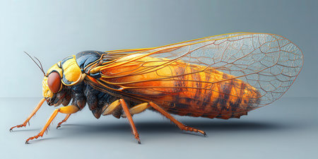 3d illustration of cicada insect on the gray background.