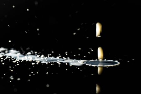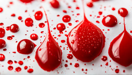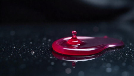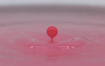 Drops of red water dripping into milk. Reflection on the milk and drop will jump up.
