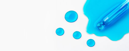 Drops of cosmetics and a pipette on a white background. A product for skin, face or hair care.