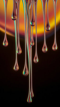 Vibrant orange fluid splash with scattered droplets on backdrop