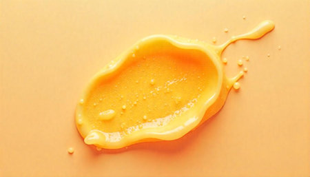 Cream liquid gel serum flows down on yellow texture, makeup and cosmetics background, skincare or hair product