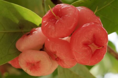 Rose apple fruit summer hanging on the tree / rose apples tree in orchard in Thailand
