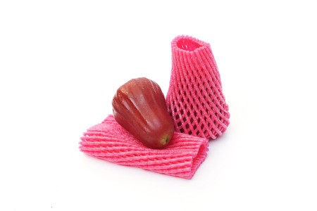 Rose apple or chomphu on white background under morning light from window.. Thailand apple fruit flavors of sweet red gloss.
