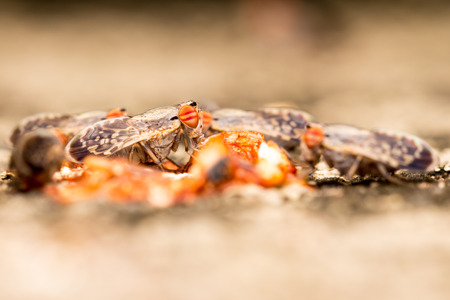 Beautiful nature scene macro cicada molting. Showing of eyes and wing detail.Cicada in the wildlife nature habitat using as background or wallpaper.Cicada insect stick on tree in tropical rain forest.