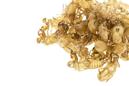 Cicada from Brood II in 2013 in Virginia. Detailed macro image against white background