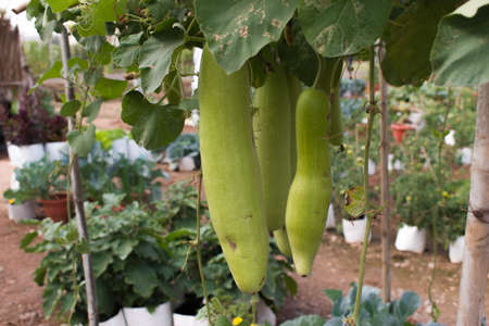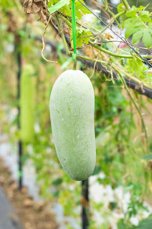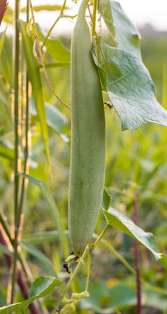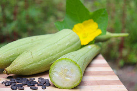 luffa acutangular, Cucurbitaceae green vegetable fresh in garden on nature background