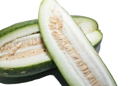 Cut winter melon isolated on white background.(Benincasa hispida plant)