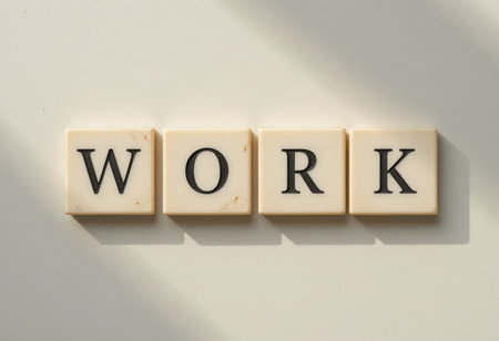 An engaging flat lay of letter tiles spelling the word WORK, symbolizing professional motivation and productivity in a creative workspace.