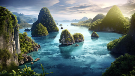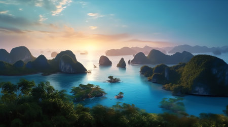 Thailand island cluster, seen from above. Generative AI