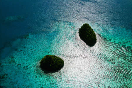 Indonesia is a beautiful place. High angle shot of a little islets and islands in the middle of Indonesia.