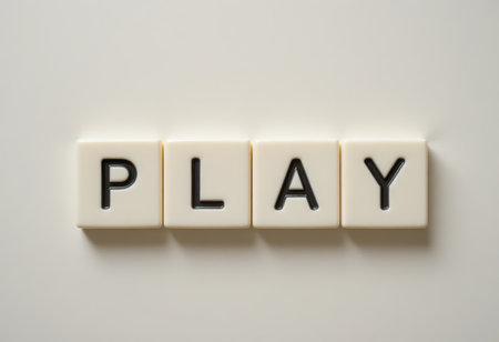 Wooden Blocks Spelling PLAY on Reflective Glass Surface