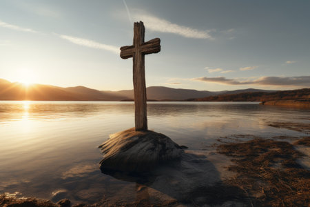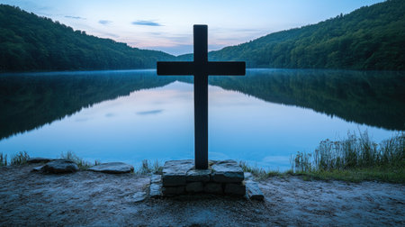 A symbol of faith and spirituality, the cross stands tall and unyielding, even in the midst of the tranquil scene around it