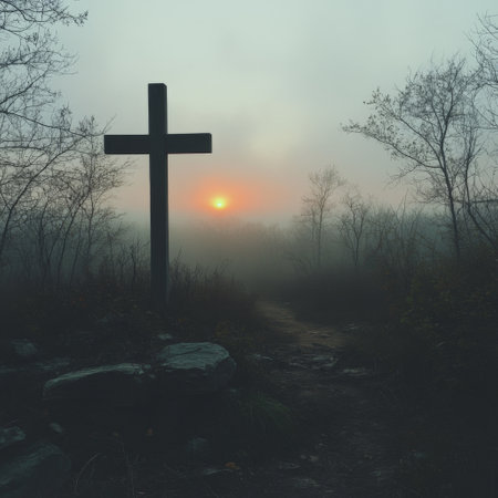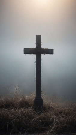 AI Generated. Cross Shrouded in Misty Fog Creating a Sense of Mystery and Reverence