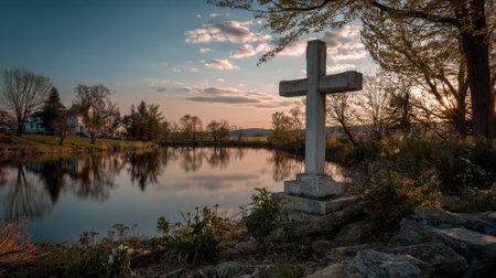 Evening Cross Profile, Symbolizing Easter Hope, Tranquil Scenery.
