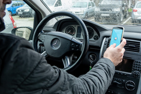 Bar, Montenegro, 12 January 2026, Smartphone navigator Yandex Maps app for driver
