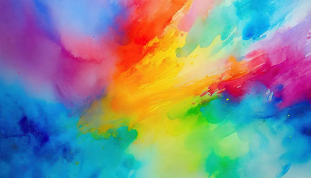 This dazzling bright colorful watercolor painting background texture showcases a vivid array of abstract patterns, rich gradients, and bold tones, perfect for enhancing digital art, crafting,
