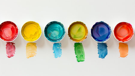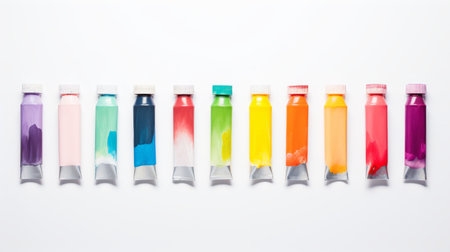 Row of watercolor paints for art and craft on a white background generative ai