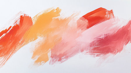 This artwork showcases a striking minimalist design with bold brush strokes in vibrant shades of orange, pink, and red against a clean white background, emphasizing color contrast and simplicity.