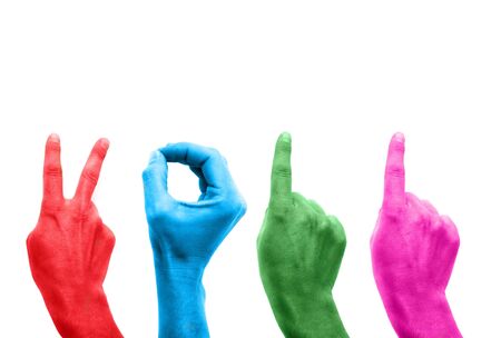 Boy hand showing number two gesture symbol isolated on white background. Gesturing number 2. Number two in sign language. counting down two concept. two fingers up. man hand sign victory gesture.