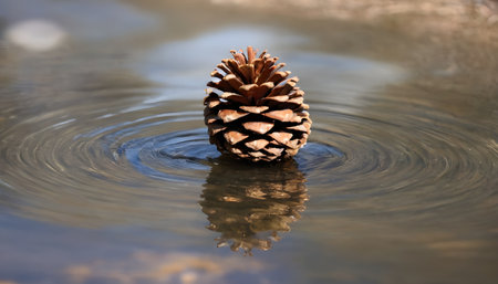 a single pine cone in the water in the spring