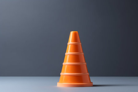 Single traffic cone on a clean, neutral backdrop, detailed close-up shot with plenty of copy space