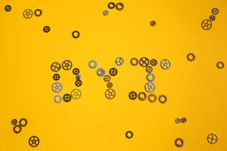 DYI abbreviation made of gears on yellow background. DIY Concept