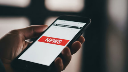 man hand holding smartphone with news app on the screen, business concept