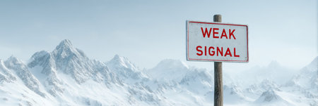 Weak Signal Sign in Icy Alpine Wilderness