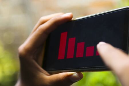 attractive hands showing decrease graph on a smart phone