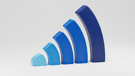 A visual representation of a wireless signal is rendered against a white backdrop. The composition features a blue gradient, with varying shades creating a sense of depth and dimension. This design could be utilized in various digital contexts or for commercial applications. The clean style is adaptable for diverse uses.
