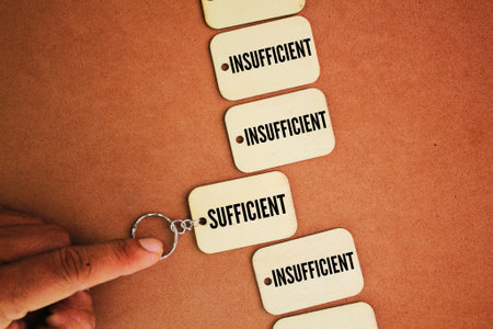 wood with the words sufficient or insufficient. selected enough. the concept of quantity or rate of something filled.