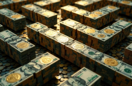 Abstract labyrinth composed of bills and coins --ar 3:2