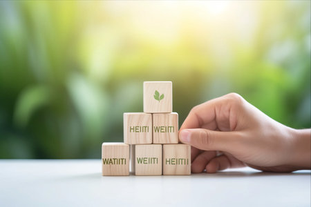 Hand flip wooden cube with word wealth. Investment in life insurance and healthcare concept