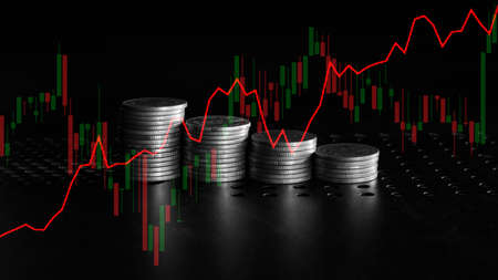 Graph stock market. Pile of Coins on stacks. investment and saving concept