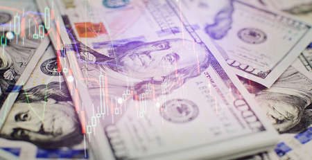 Stock market chart with US dollars banknote top view