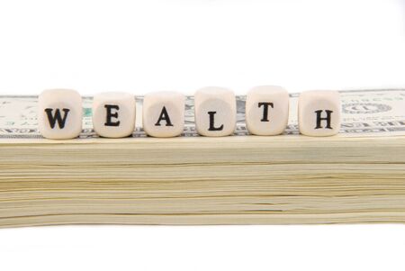 stack of money with word wealth concept