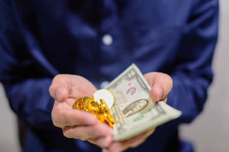 Businessman holding american dollars in his hands