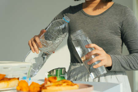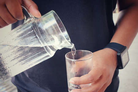 Pouring drinking water in a transparent glass